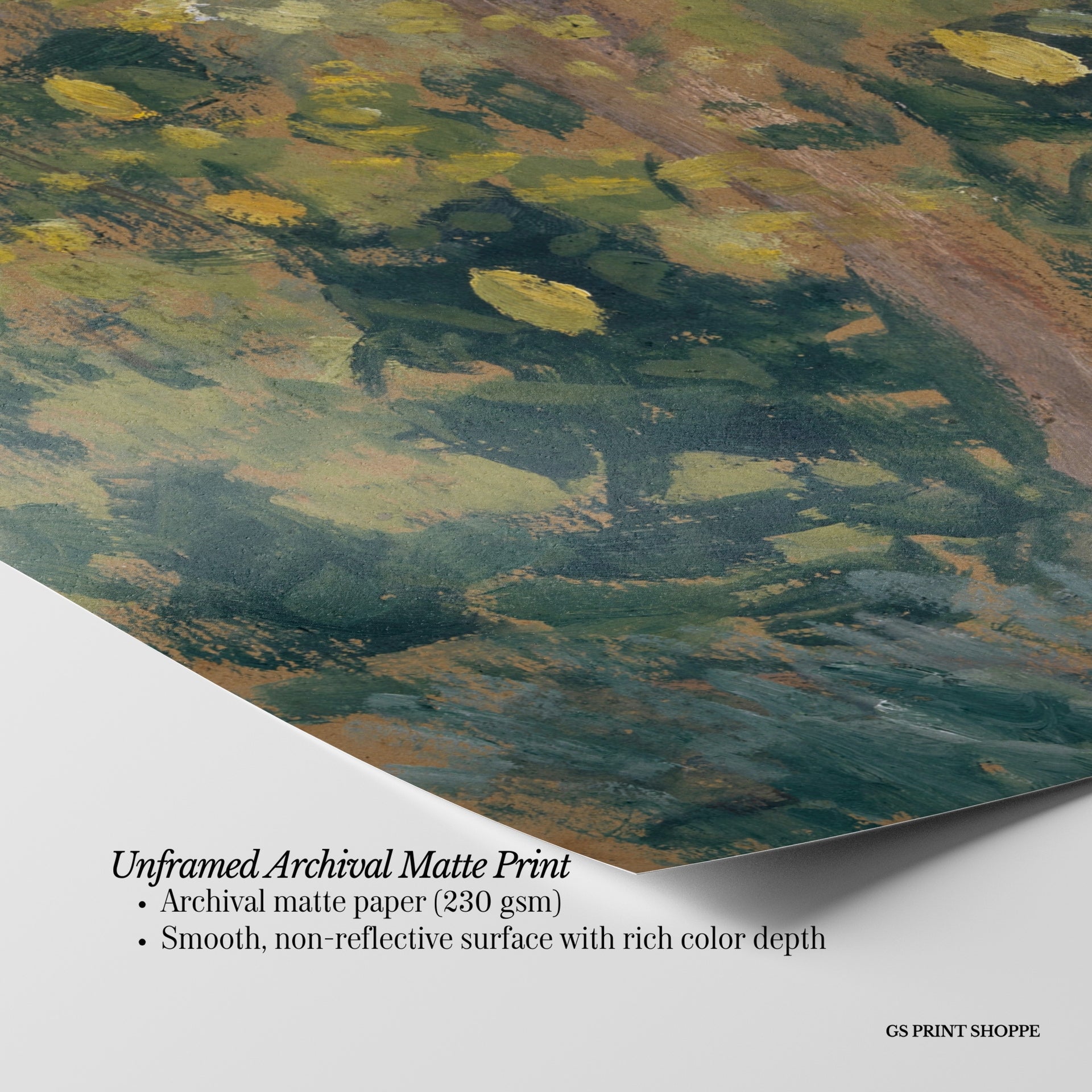Unframed: This print is professionally printed on archival matte paper (230 gsm), a smooth, acid-free paper with a non-reflective finish. It will be carefully packaged to arrive safely at your door.