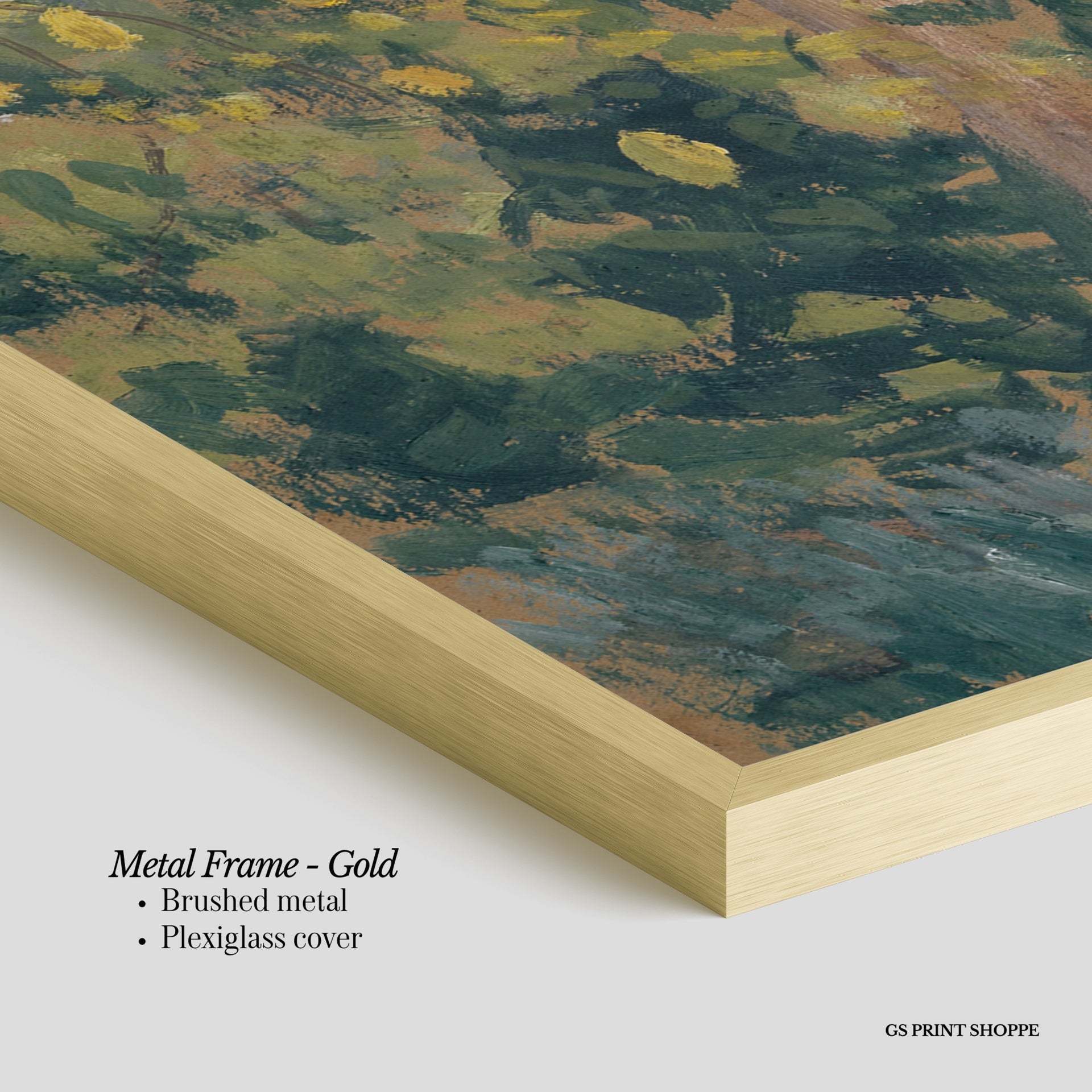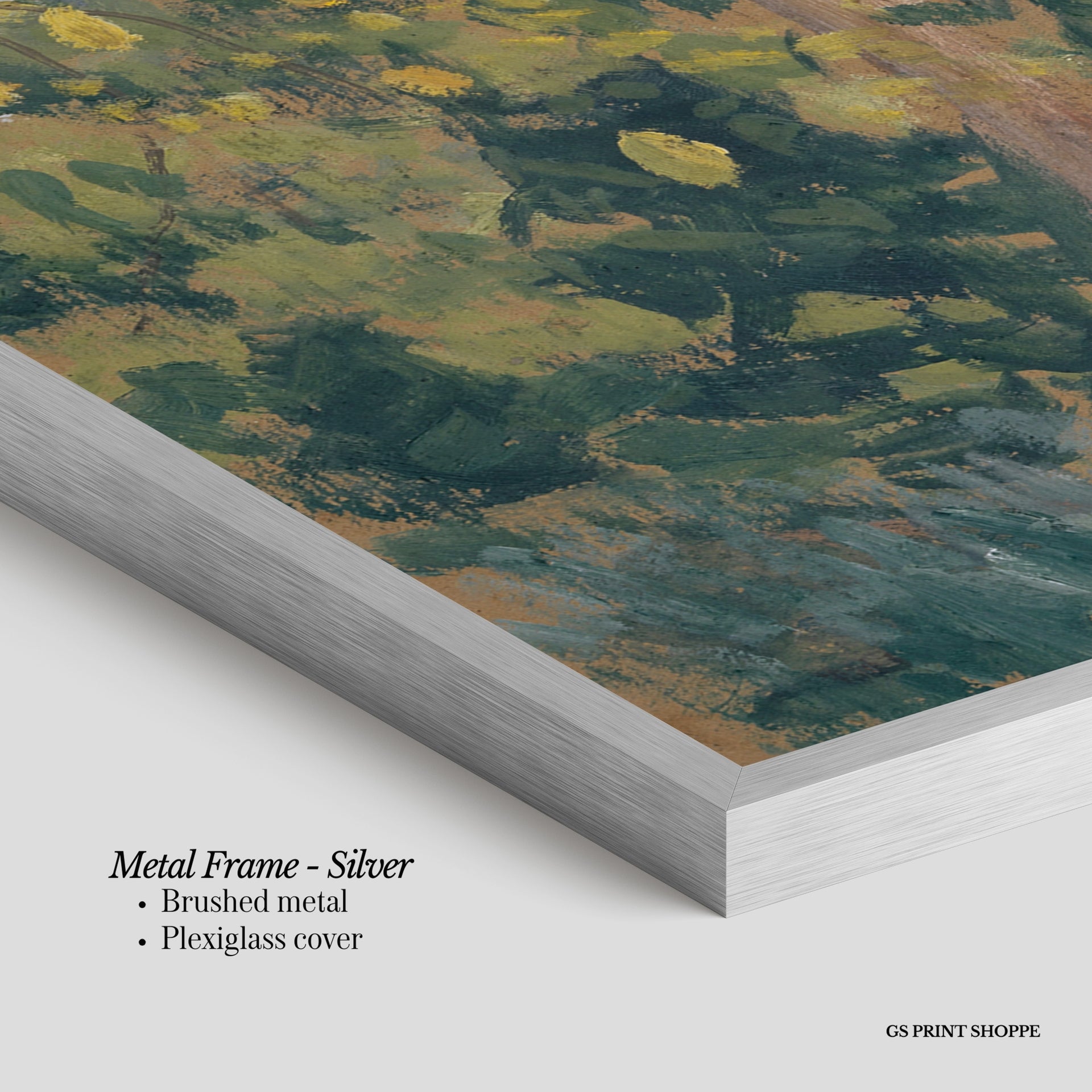 Metal Frame: Sleek and modern, our metal frame is crafted with brushed metal for a polished finish. It comes with durable plexiglass and sturdy metal hangers for horizontal or vertical display.